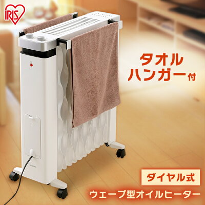 【在庫処分】オイルヒーター アイリスオーヤマ 8畳 タオルハンガー付 IWHH-1212D-W ウェーブ型オイルヒーター オイル ヒーター 省エネ 小型 おしゃれ 安全 静音 足元 温度調節 3段階 キャスター付き 1年保証 乾燥しない リビング 子供部屋 寝室 オフィス ストーブ